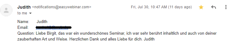 Ich habe dir soeben eine E-Mail geschickt mit dem Link zum Online Seminar!